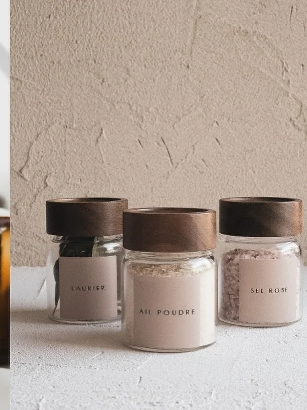 Nous créons dans notre atelier des étiquettes minimalistes waterproof pour bocaux, pots à épices et bouteilles.